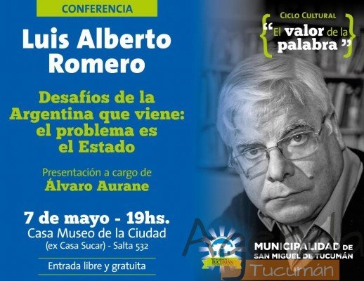 En el marco del ciclo cultural “El valor de la palabra”, organizado por la Municipalidad de San Miguel de Tucumán, el reconocido profesor e historiador Luis Alberto Romero brindará una conferencia denominada “Desafíos de la Argentina que viene: el problema es el Estado”.