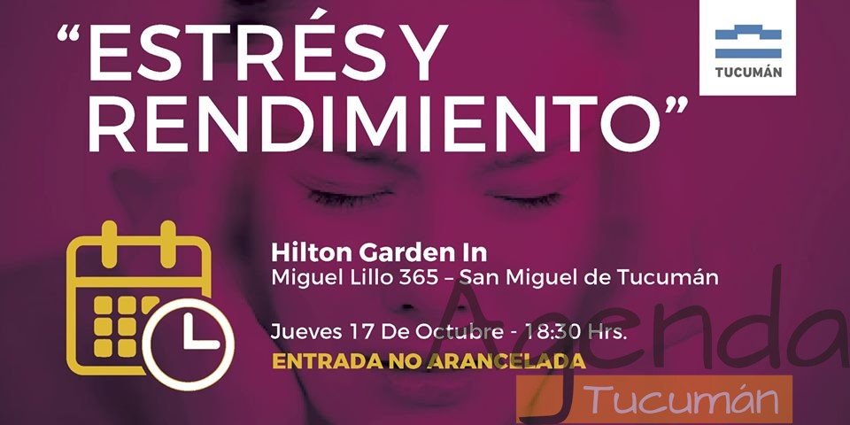 <img class="alignnone size-full wp-image-9338" src="https://agendatucuman.com.ar/wp-content/uploads/2019/10/01-51.jpg" alt="" width="960" height="480" /> <table class="uiGrid _51mz" cellspacing="0" cellpadding="0"> <tbody> <tr class="_51mx"> <td class="_51m- _phw"> <div class="_6a" aria-hidden="true"> <div class="_6a _6b"></div> </div></td> <td class="_51m- _51mw"> <div class="_4930"> <div class="_4dpf _phw"> <div class="_6a"> <div class="_6a _6b"></div> <div class="_6a _6b"> <div class="_xkh"><a id="u_0_1f" class="_5xhk" href="https://www.facebook.com/HGITucuman/?eid=ARCIBXwM4AfB4TUs-U88_6bYMQSOMbuQwC9d5F_A7lRlml1ERm1KKPWVWC4md979UzVERfPTaehtWh-b" data-hovercard="/ajax/hovercard/page.php?id=286046014833946&extragetparams=%7B%22eid%22%3A%22ARCIBXwM4AfB4TUs-U88_6bYMQSOMbuQwC9d5F_A7lRlml1ERm1KKPWVWC4md979UzVERfPTaehtWh-b%22%7D" data-hovercard-prefer-more-content-show="1">Hilton Garden Inn Tucuman</a> <div class="_5xhp fsm fwn fcg">Miguel Lillo 365</div> </div> </div> </div> </div> </div></td> </tr> </tbody> </table> Entrada gratuita <a href="https://www.eventbrite.com.ar/e/estres-y-rendimiento-tickets-74686947671?aff=efbeventtix&fbclid=IwAR00fQue7vq0Wwb6KZjn545KGXBbJk2wquLzRdaxd2IZT0GO30SO9o8rdYU">https://www.eventbrite.com.ar/e/estres-y-rendimiento-tickets-74686947671?aff=efbeventtix&fbclid=IwAR00fQue7vq0Wwb6KZjn545KGXBbJk2wquLzRdaxd2IZT0GO30SO9o8rdYU</a>