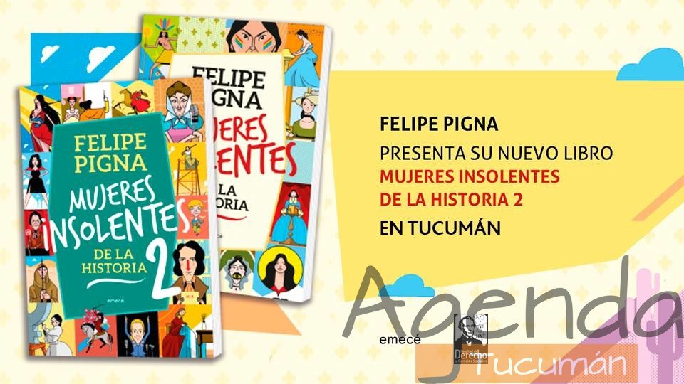 La Facultad de Derecho y Ciencias Sociales de la Universidad Nacional de Tucumán (UNT) los invita a la presentación de “Mujeres Insolentes de la historia” de Felipe Pigna el miércoles 27 de febrero a las 20:00. Entrada libre y gratuita sujeta a capacidad de la sala.