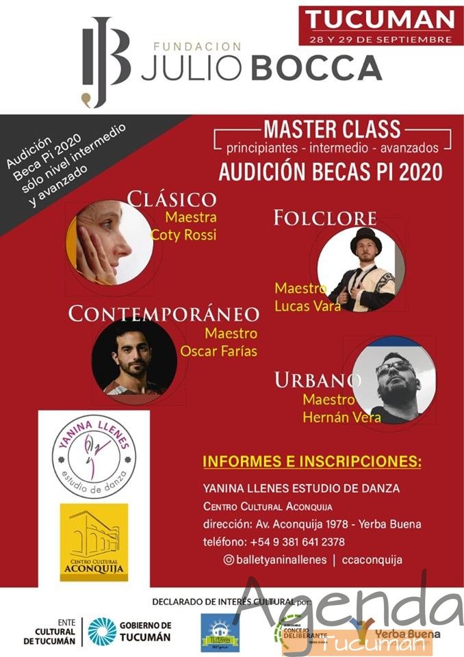 Las mismas servirán de audición para la entrega de la Beca PI2020 (país integrado) que consiste en un año de clases en la sede de la Fundación Julio Bocca en la Ciudad Autónoma de Buenos Aires. Las clases se dictaran en 3 sedes simultáneamente. Informes e inscripciones Centro Cultural Aconquija.