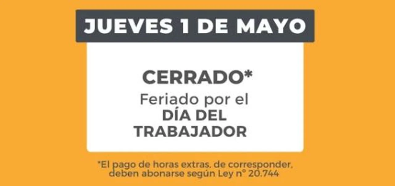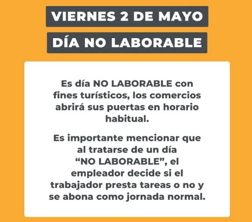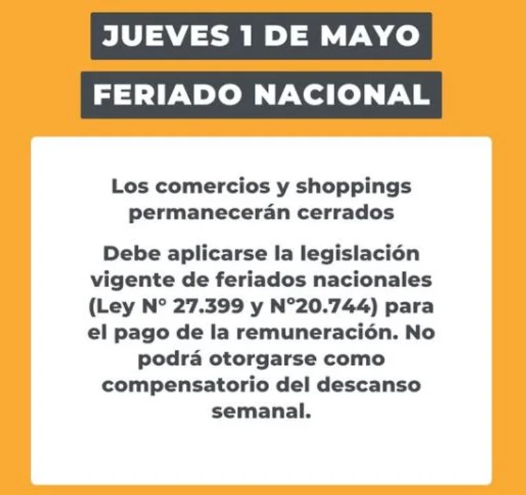 La Cámara de Comercio de San Miguel de Tucumán ha comunicado las pautas que regirán la apertura de los establecimientos comerciales durante el feriado del 1 de mayo, Día del Trabajador, así como el puente no laborable del 2 de mayo.
