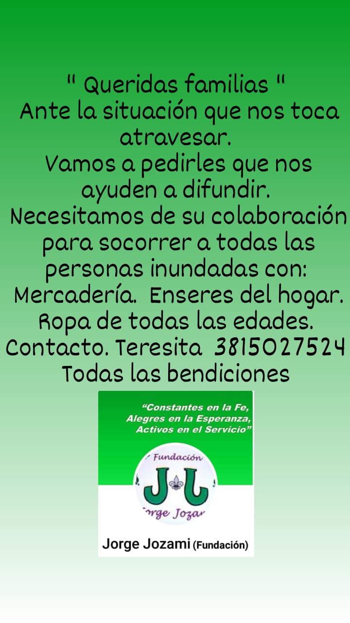 Por todos es que la fundación Jorge Jozami hace un llamado a la solidaridad a la sociedad tucumana para colaborar con a las personas más perjudicadas por las inundaciones.